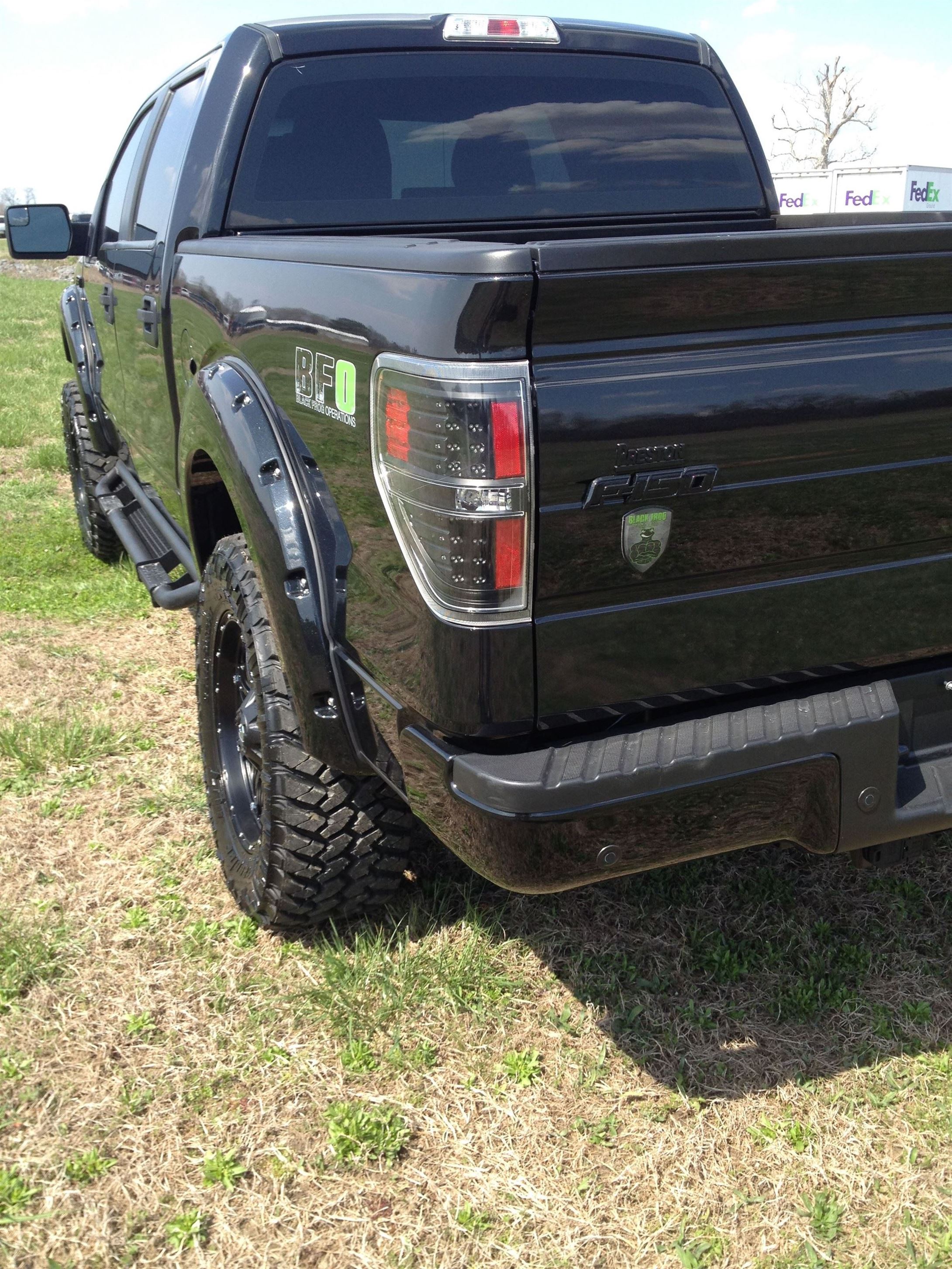 Preston Ford has designed a very special truck that is now available for purchase. The truck is called the Black Frog Operations Truck and it has custom logos on it that cannot be found anywhere else! The logo is a frog with muscles that was made just for this truck. The truck is a black 2014 F-150. This has been up-fitted with special accessories.