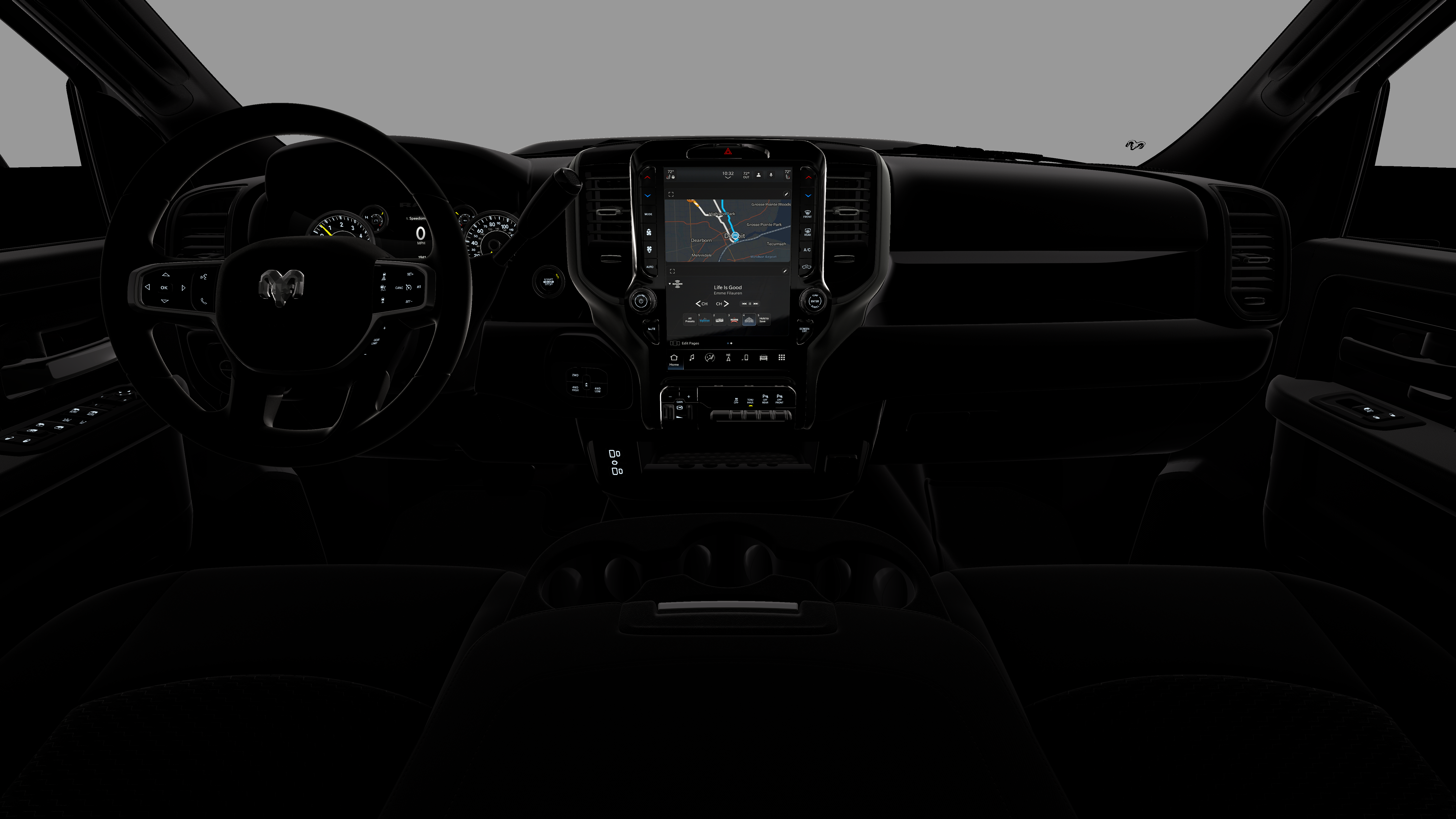 - Radio w/Seek-Scan, Clock, Speed Compensated Volume Control, Aux Audio Input Jack, Voice Activation, Radio Data System and Uconnect External Memory Control