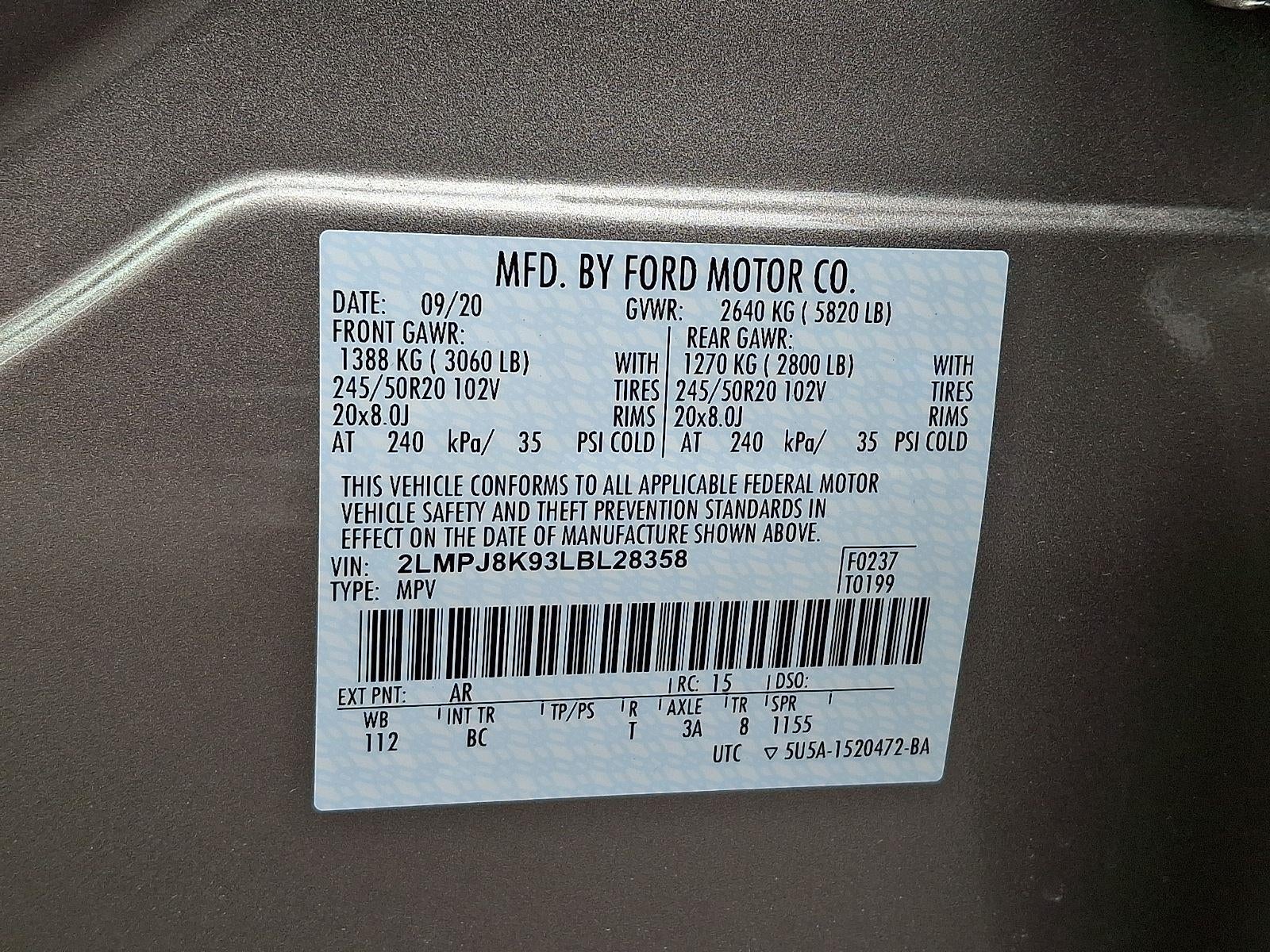 - Tires: P245/50R20 AS BSW V-Rated