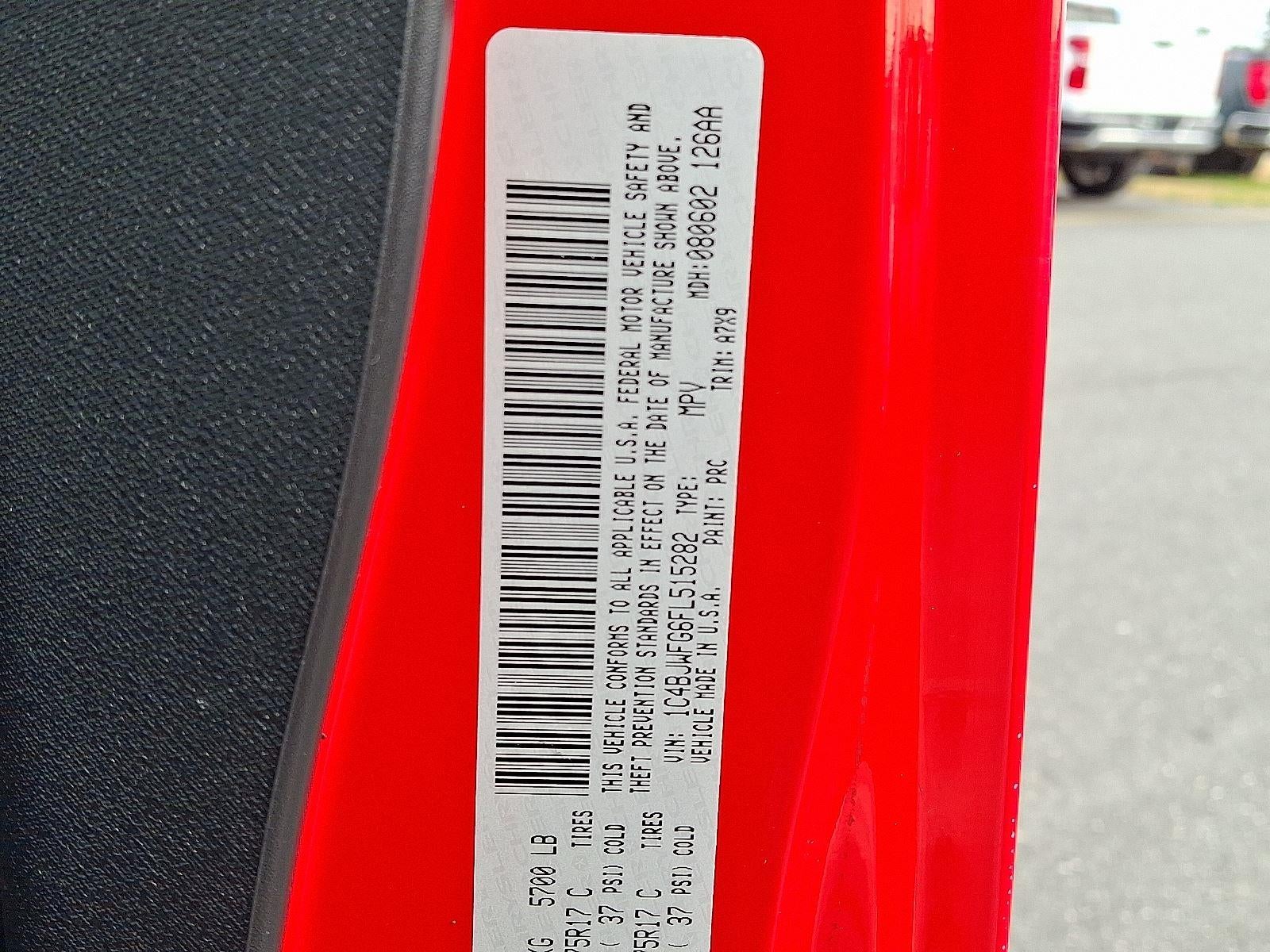 ENGINE: 3.6L V6 24V VVT, TRANSMISSION: 5-SPEED AUTOMATIC (W5A580), QUICK ORDER PACKAGE 24R, 3.73 REAR AXLE RATIO, FIRECRACKER RED CLEAR COAT, BLACK, CLOTH BUCKET SEATS, CONNECTIVITY GROUP, PREMIUM BLACK SUNRIDER SOFT TOP, RADIO: UCONNECT 430N CD/DVD/MP3/HDD/NAV, ALPINE 9-SPEAKER W/ALL WEATHER SUBWOOFER, REMOTE START SYSTEM, MANUFACTURER'S STATEMENT OF ORIGIN