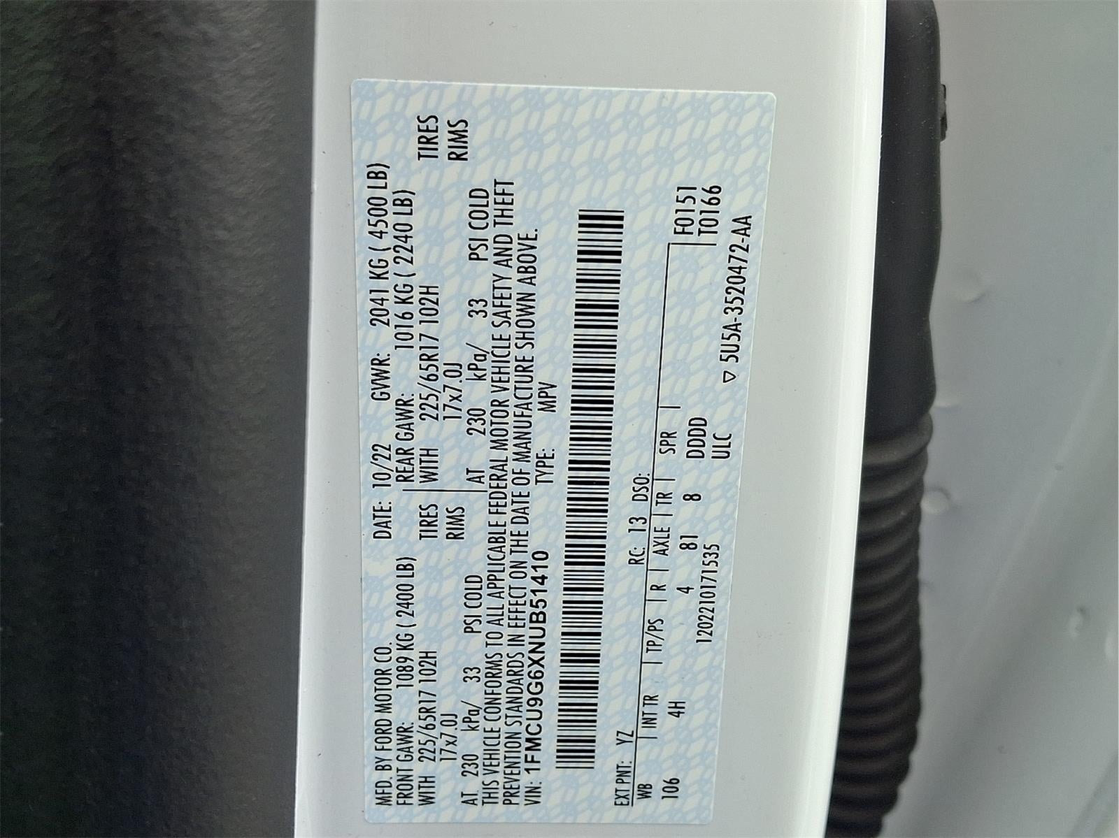 - Vehicle Name: Ford Escape